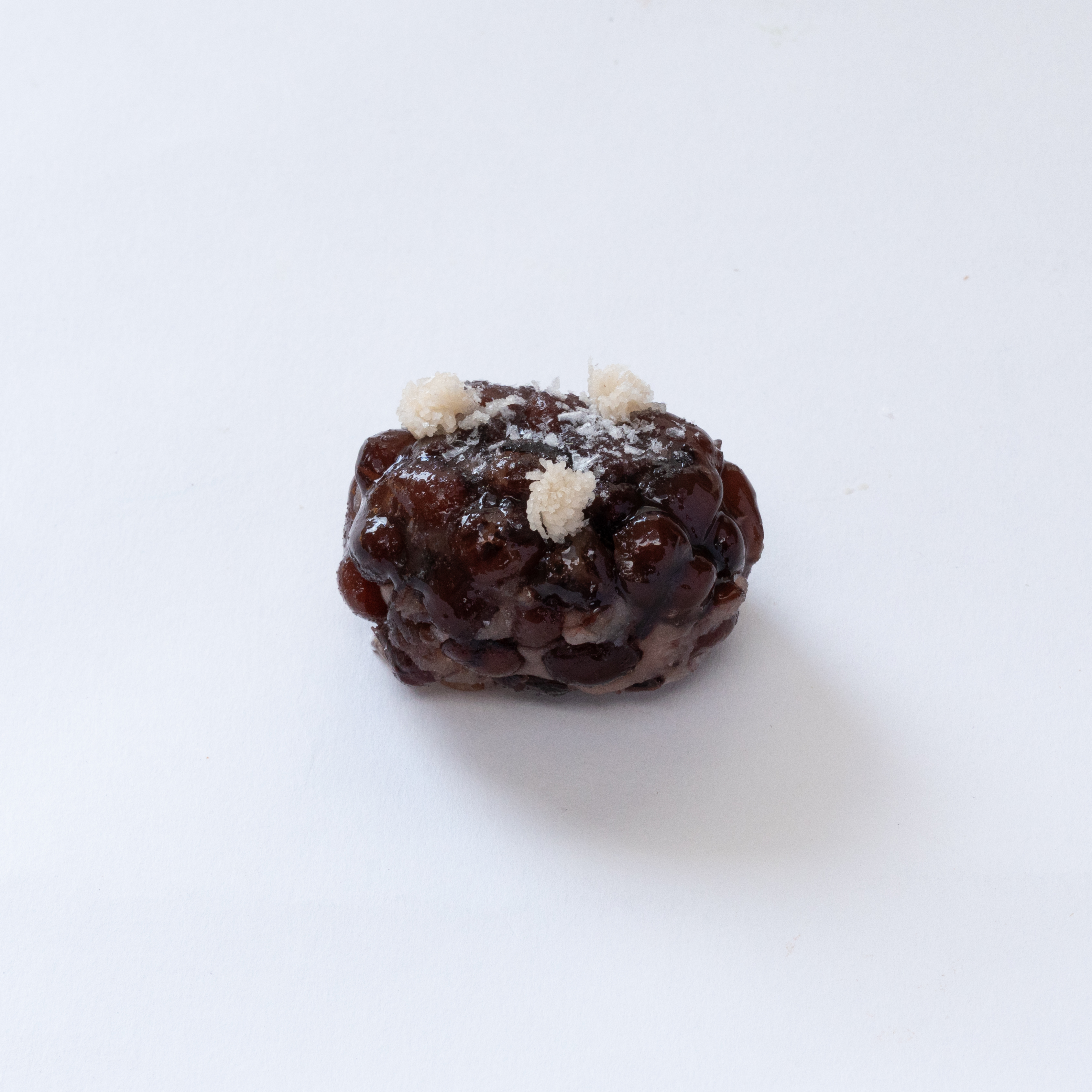 冬の山路を表現した、風情ある一品。ふっくらとした大納言かのこ豆で包んだ中には、練り切りと自家製小豆こしあんを忍ばせました。豆の食感とあんのなめらかさが織りなす、奥深い味わいです。